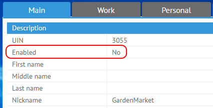 In the account profile, on the opposite of "Enabled" will be specified "No":
